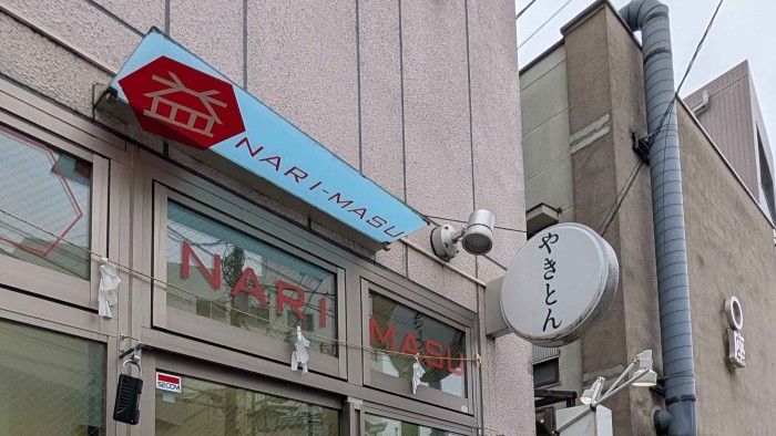 店名は「なります」だが、丸看板には「やきとん」と書かれている