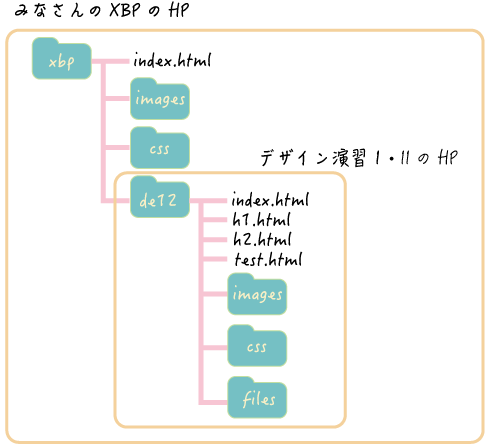 デザイン演習Ⅰ・Ⅱトップページ→同じ階層(フォルダ)にあるindex.htmlに移動